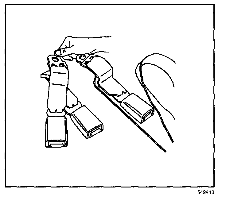 1. Install the seat belt buckles for the child seat, positioning the anchor to the rear of the seat to extend beyond the seat and the cushion.
