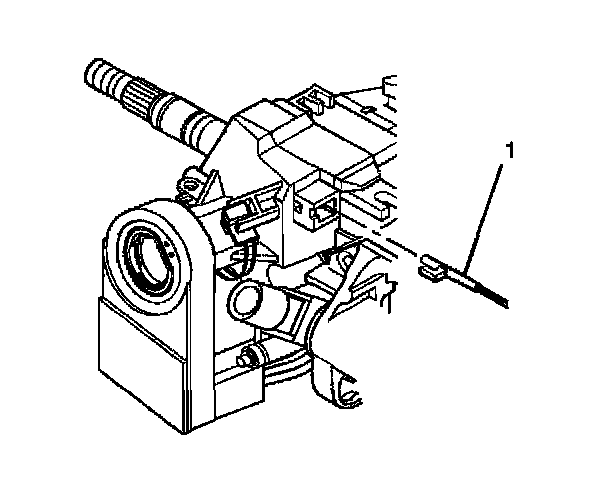 1. Install the electronic lock module assembly (1) onto the steering column housing assembly.