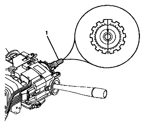 ^ The block tooth (1) of the steering shaft assembly is in the 12 o'clock position.