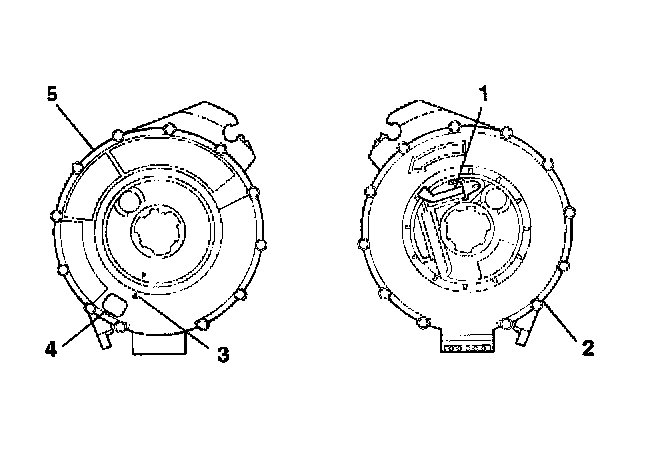 2. If the front (5) of the inflatable restraint steering wheel module coil has a centering window (4), and on the back side (2) a spring service lock (1), perform the following steps: