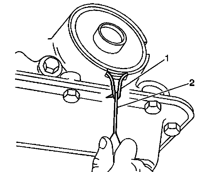 7. Remove the servo cover and O-ring seal. If the cover is hung up on the seal, use a pick (2) to pull and stretch the seal (1) out of the groove. Cut and remove the O-ring seal before removing the cover.