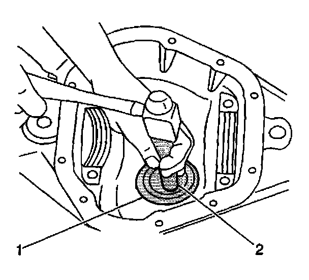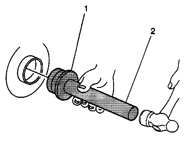 2. Install the inner pinion bearing cup using the J8608 (1) and the J8092 (2).