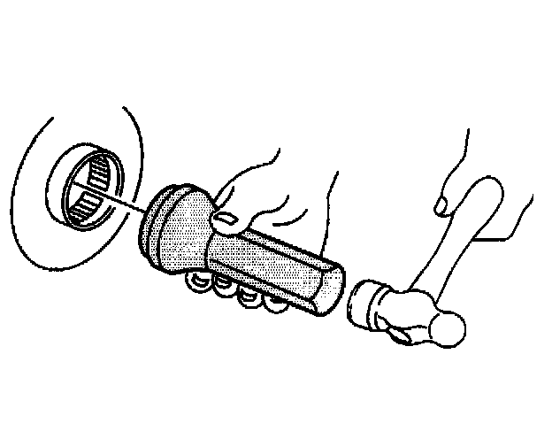 Drive the axle shaft bearing into the axle housing until the tool bottoms against the tube.