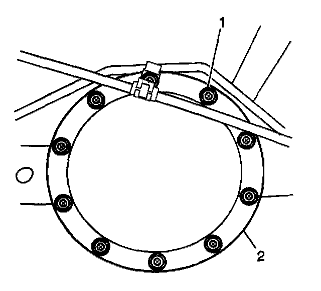 1. Install the outer pinion bearing cup using the J8611-01 (2) and the J8092 (1).