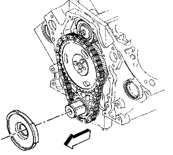 Important: Do not use a hammer to Install the camshaft sprocket onto the camshaft. To do so may dislodge the expansion cup plug (camshaft rear bearing hole).
