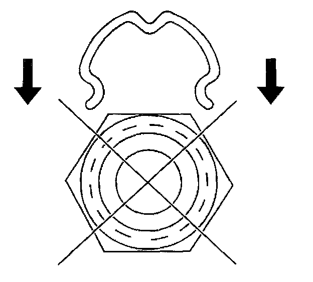 1. Do not install the new retaining ring onto the fitting by pushing the retaining ring down over the fitting.