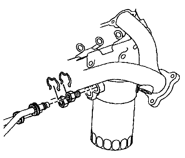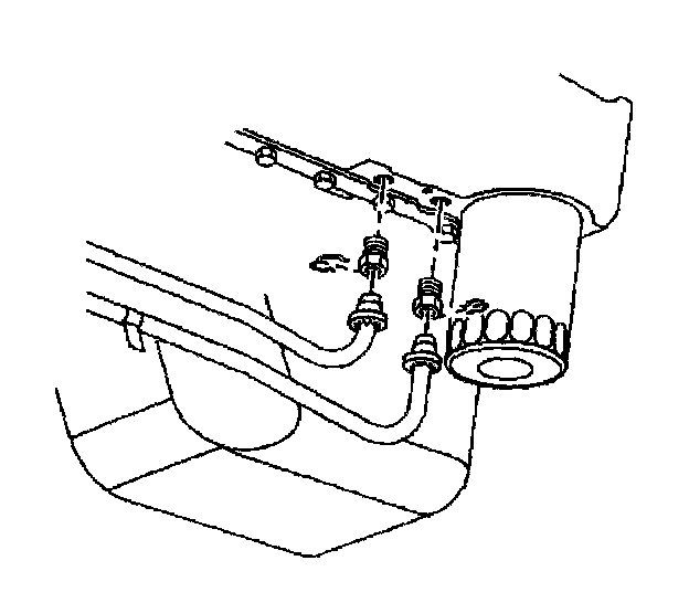 Important: After performing the following service procedure, pull back on the engine oil cooler line to ensure the engine oil cooler line is properly seated.