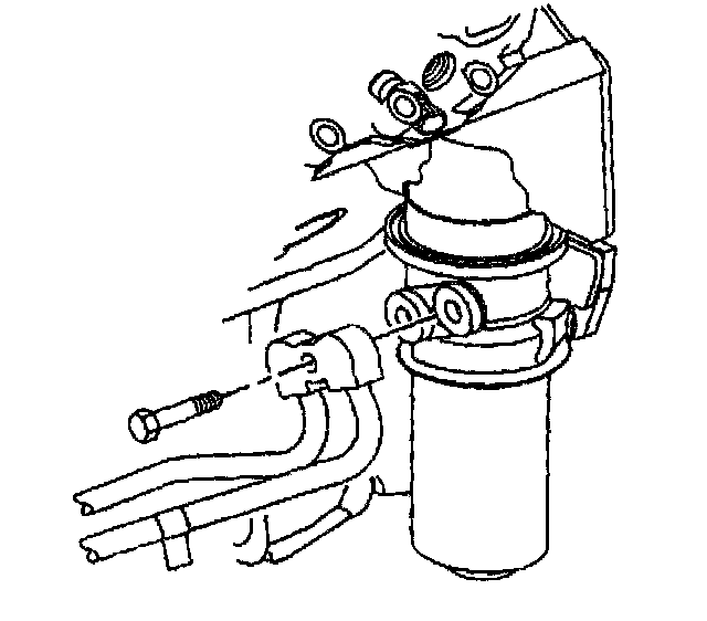 4. For the 6.5L only, remove the bolt securing the engine oil cooler line from the retaining bracket.