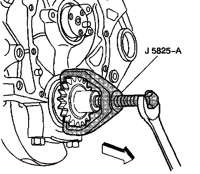 5. Use the J 5825-A in order to remove the crankshaft sprocket.