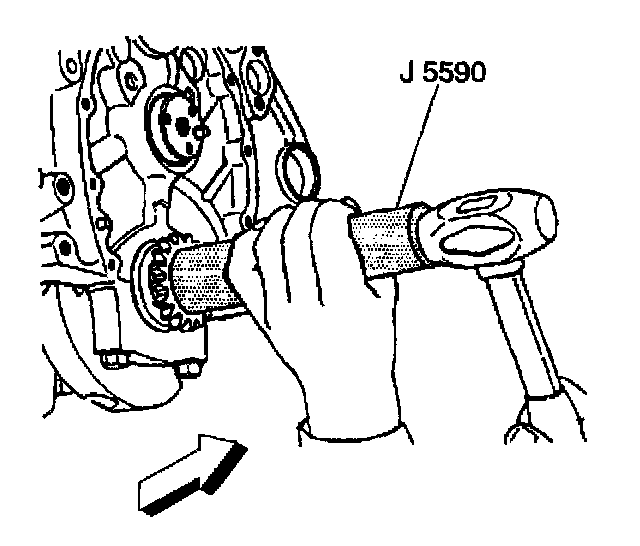 3. Use the J 5590 and a hammer in order to Install the crankshaft sprocket.