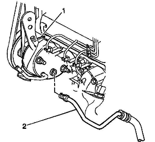 3. Remove the power steering inlet hose (2) from the steering pump (1).