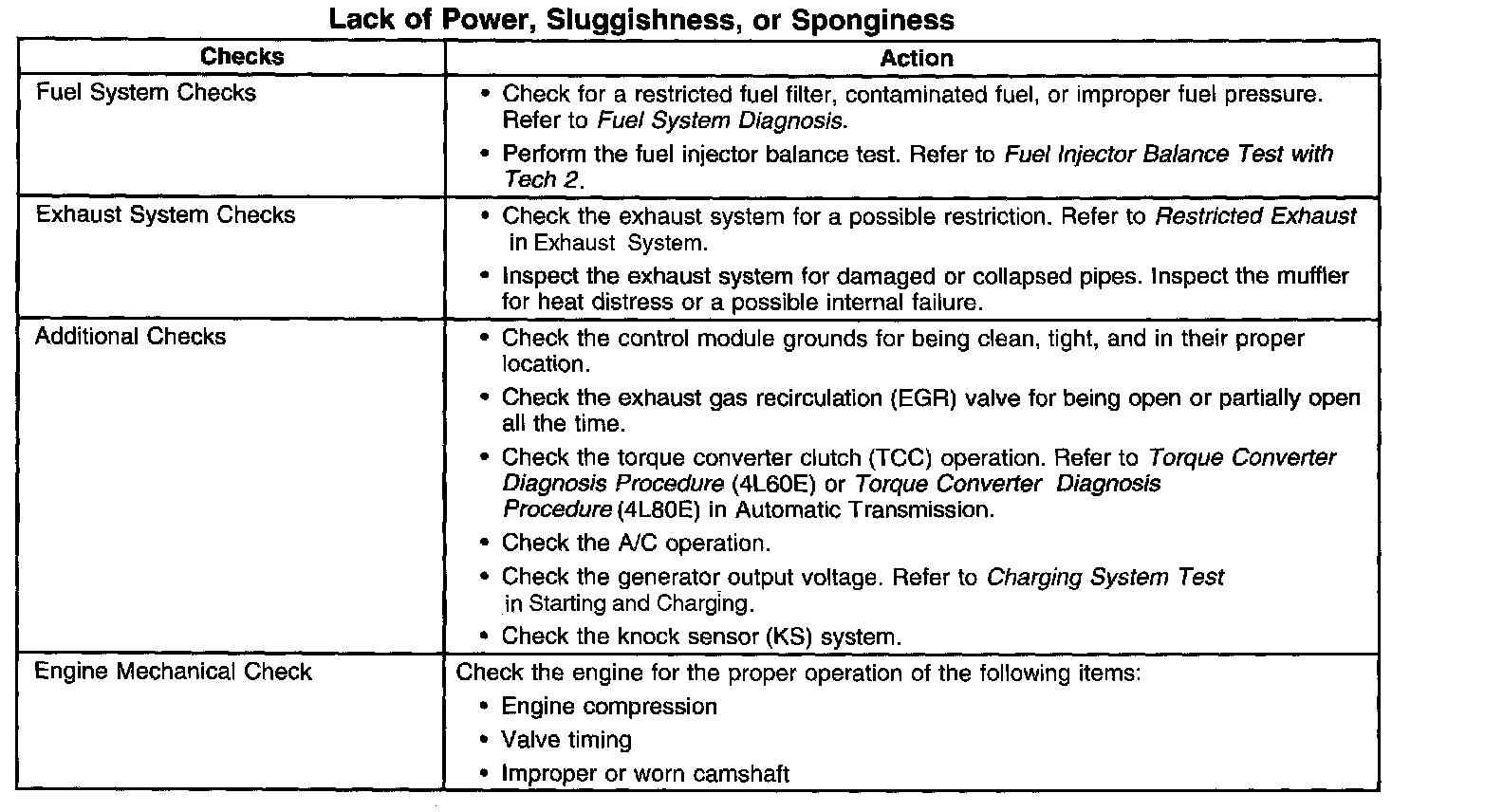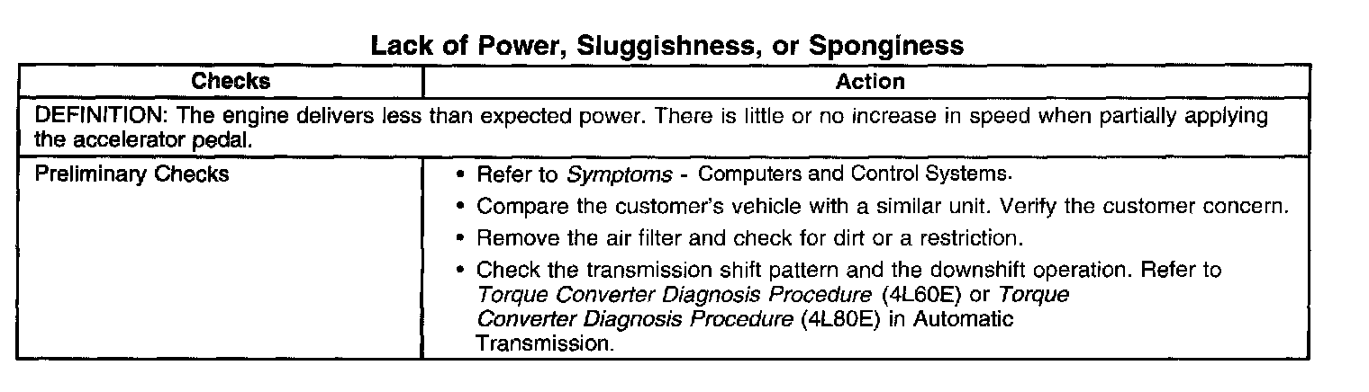 Lack of Power, Sluggishness, or Sponginess