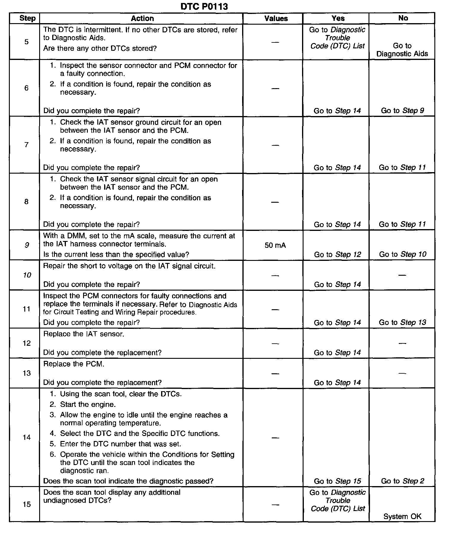 2. This step determines if DTC P0113 is a hard failure or an intermittent condition.