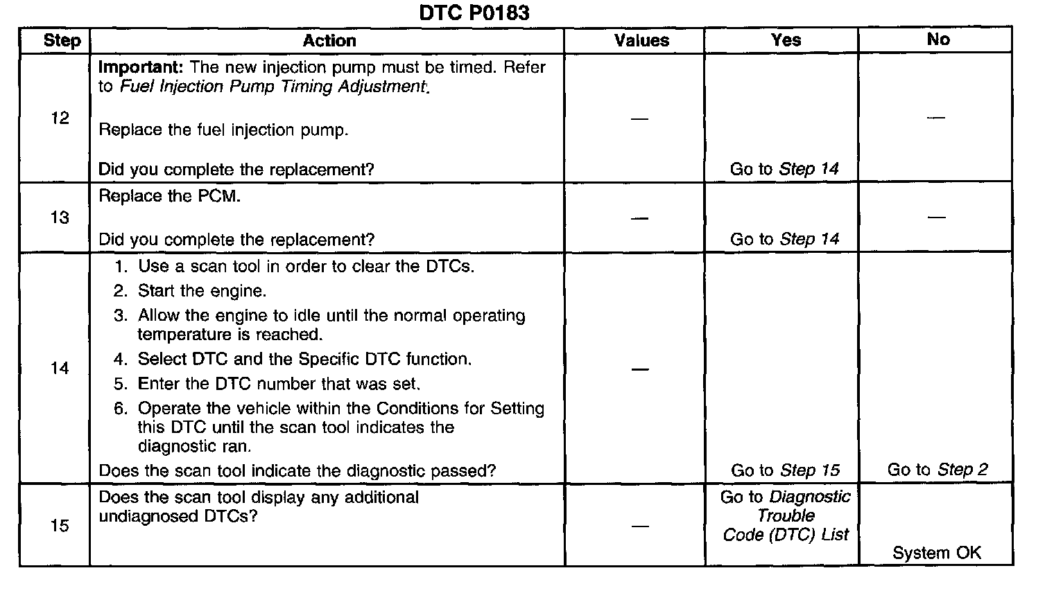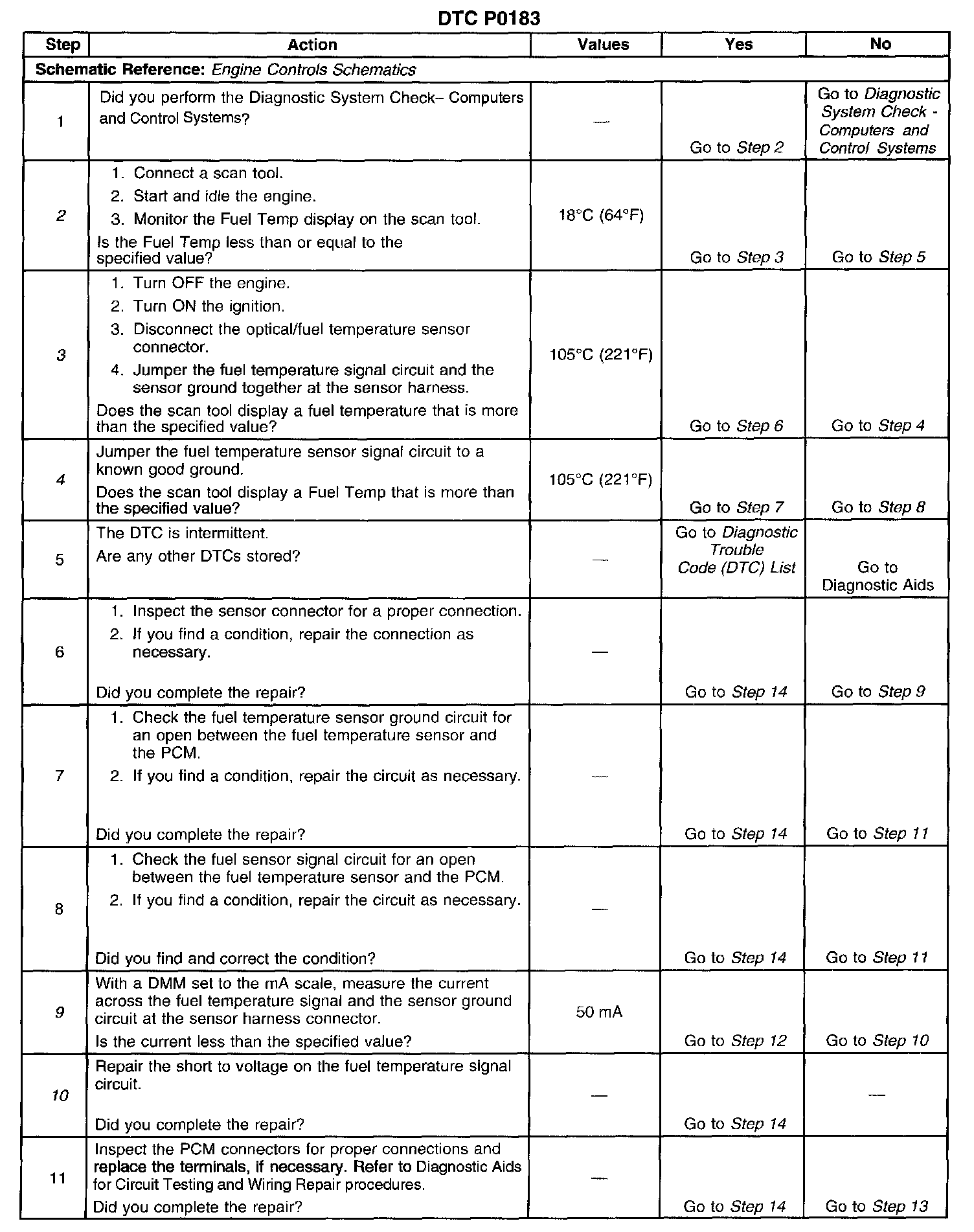 2. This step determines if DTC P0183 is a hard failure or an intermittent condition.