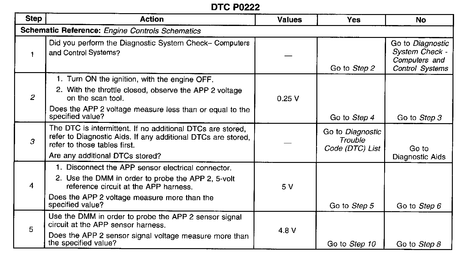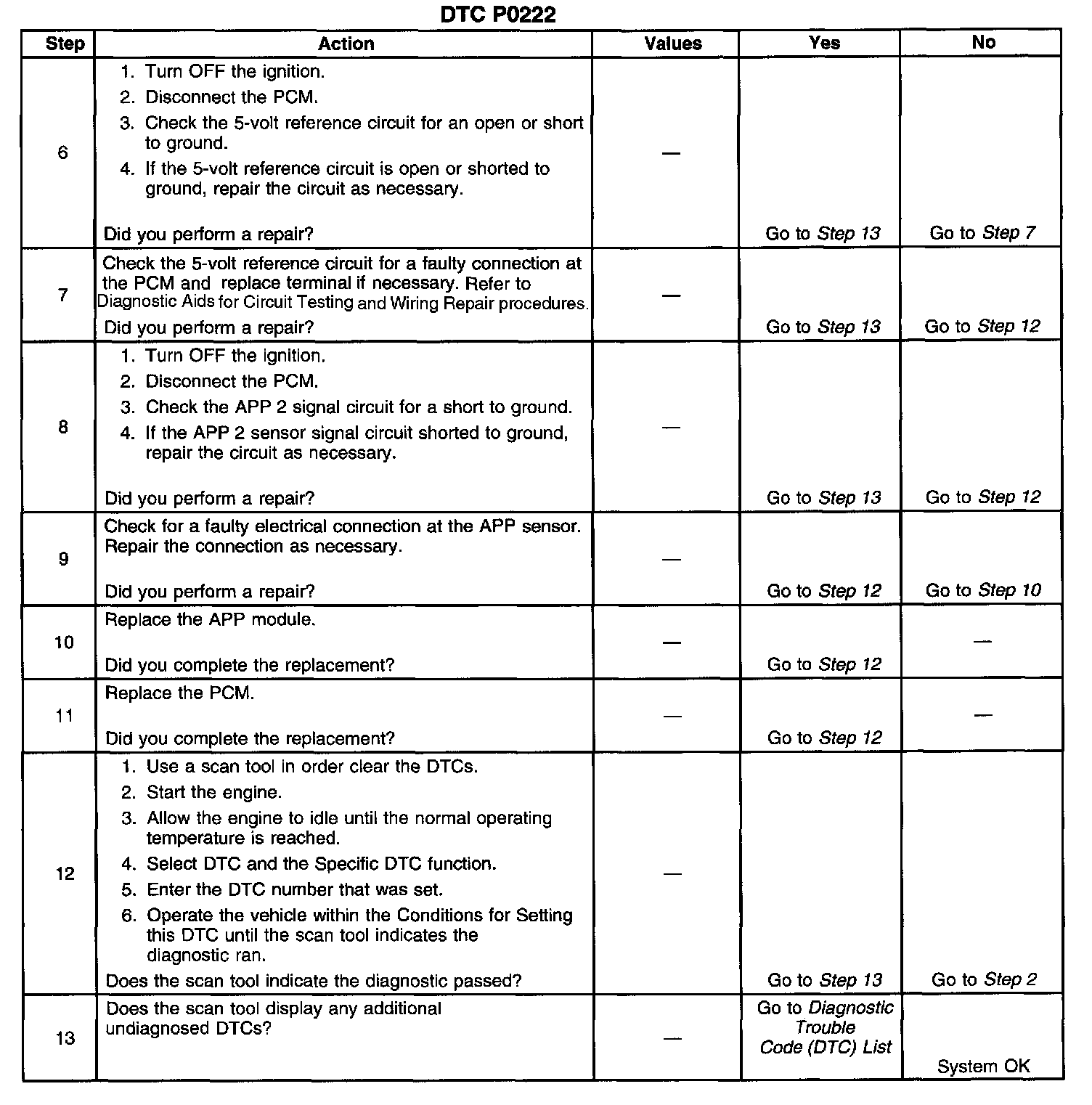 2. This step determines if DTC P0222 is the result of a hard failure or an intermittent condition.