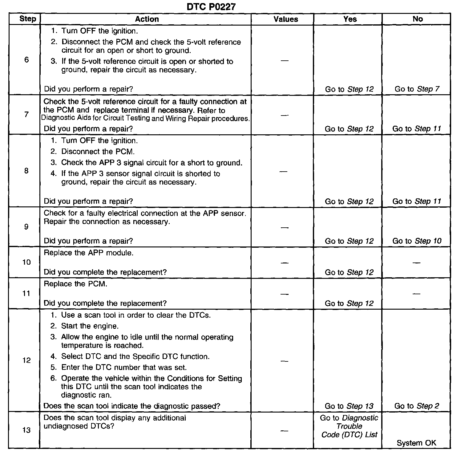 2. This step will determine if DTC P0227 is the result of a hard failure or an intermittent condition.