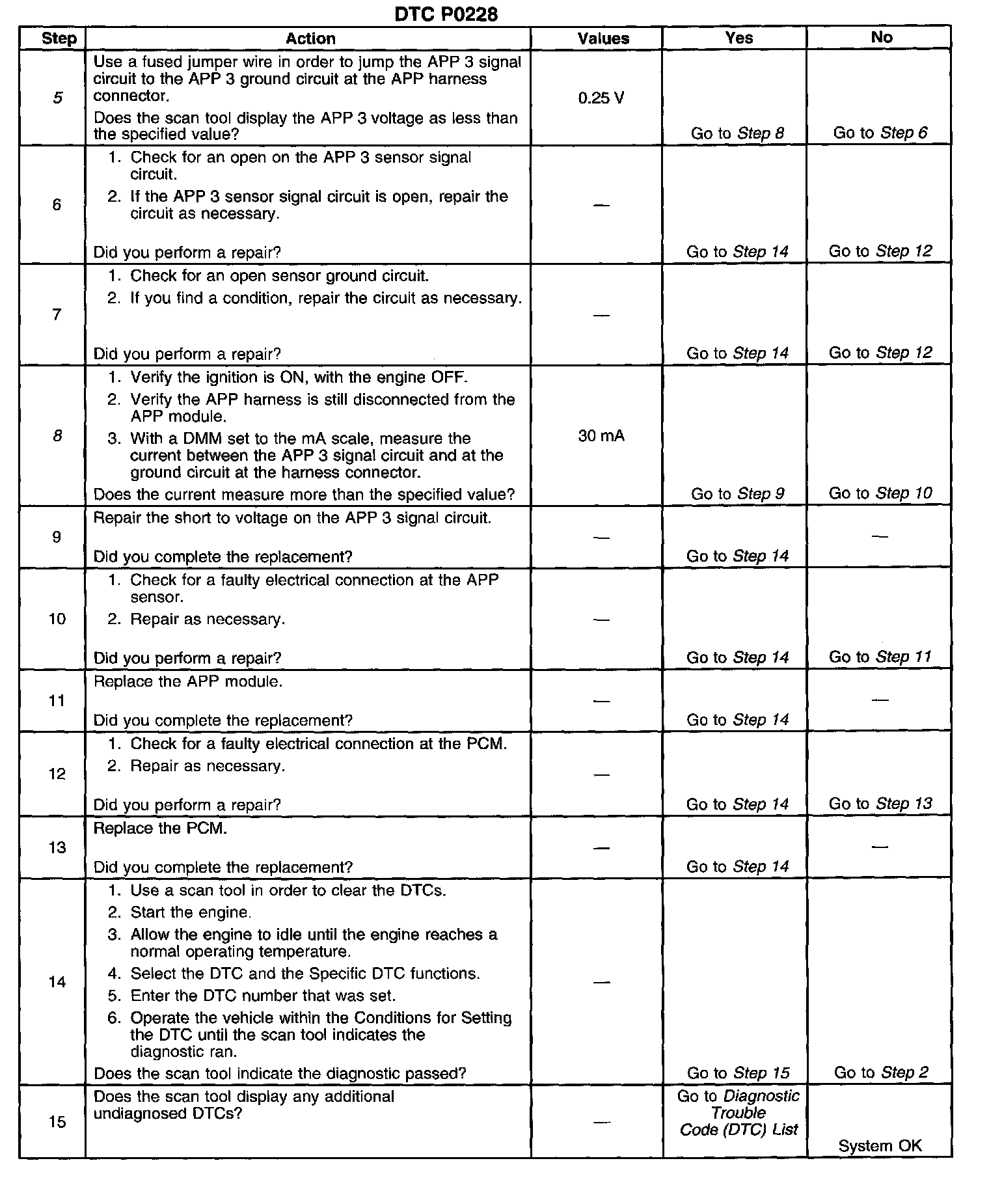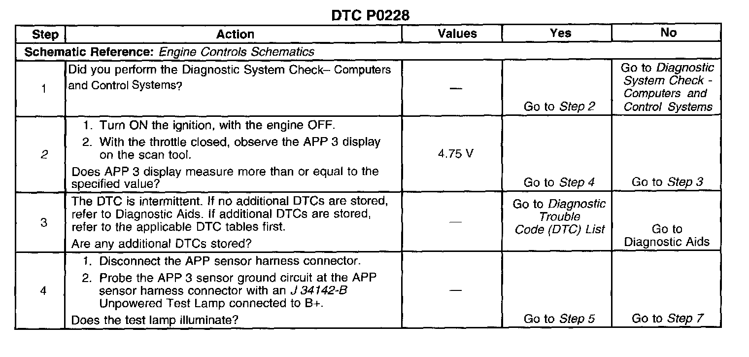 2. This step determines if DTC P0228 is a hard failure or an intermittent condition.