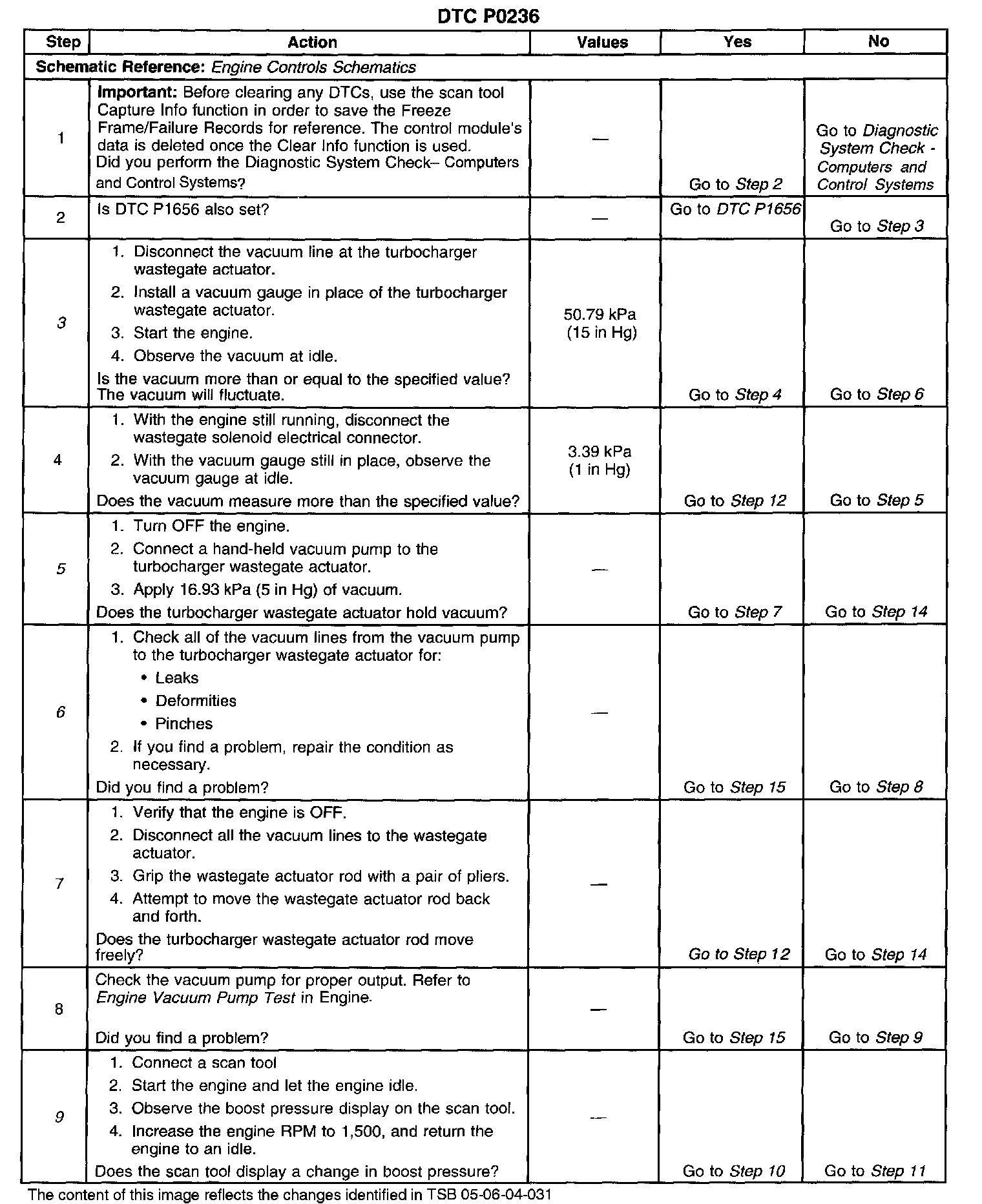 5. This step checks the turbocharger wastegate actuator for vacuum leaks. The actuator must hold a vacuum.