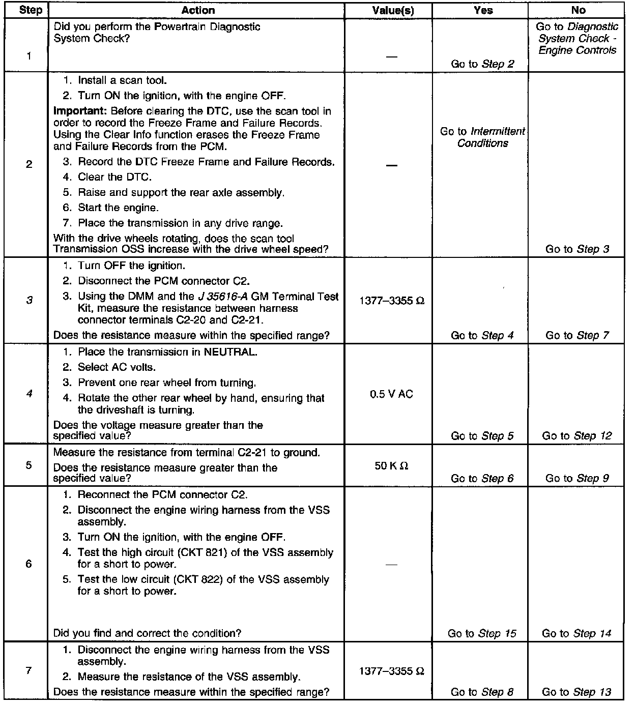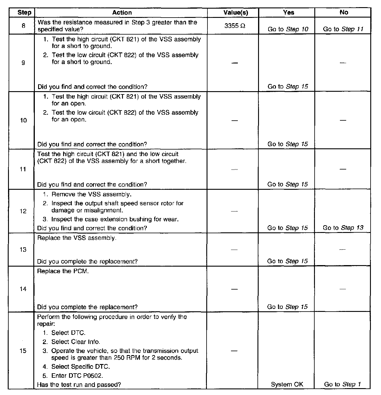 When the PCM detects a low vehicle speed when there is a high engine speed in a drive gear range, then DTC P0502 sets. DTC P0502 is a type B DTC.