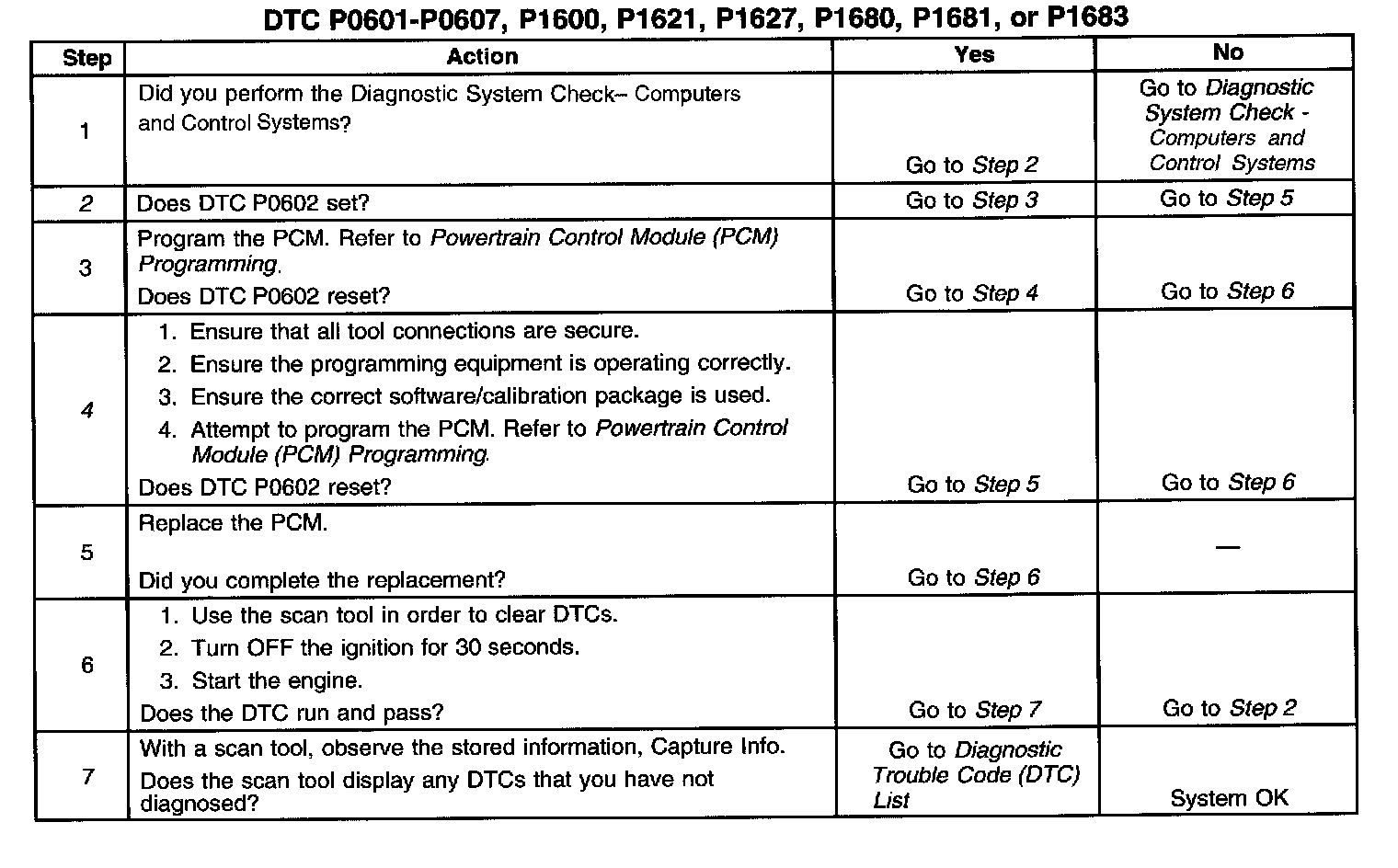 2. A DTC P0602 indicates the PCM is not programmed.