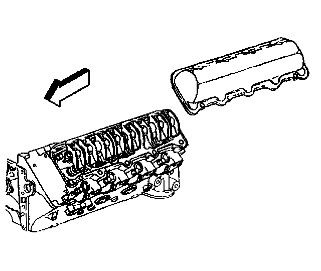 Notice: Prying on the valve rocker arm cover may cause damage to the sealing surfaces. Use a block of wood against the side of the valve rocker arm cover and strike with a hammer in a sideways direction to shear the RTV sealant.