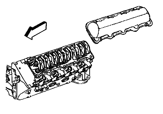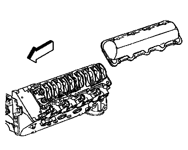 Notice: Prying on the valve rocker arm cover may cause damage to the sealing surfaces. Use a block of wood against the side of the valve rocker arm cover and strike with a hammer in a sideways direction to shear the RTV sealant.