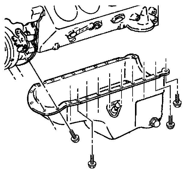 3. Apply a 5 mm (3/16 inch) bead of RTV sealant GM P/N 12346286 to the oil pan sealing surface, inboard of the bolt holes. Install the pan before the sealer starts to dry.