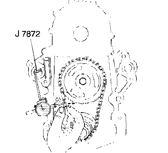 1. Attach the J 7872 to the front of the engine cylinder block.