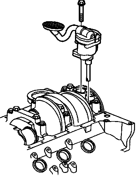 2. Apply Sealer GM P/N United States 12345493, GM P/N Canada 10953488, or equivalent to the oil pump bolts.