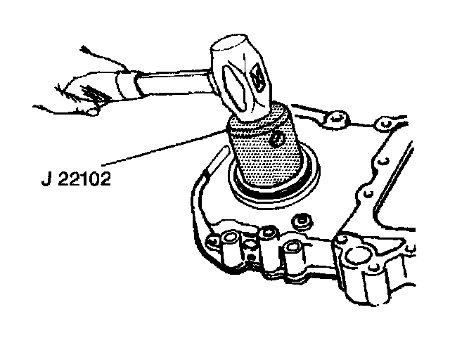 2. Install the front crankshaft oil seal using the J 22102 with the open end of the seal facing the inside cover.