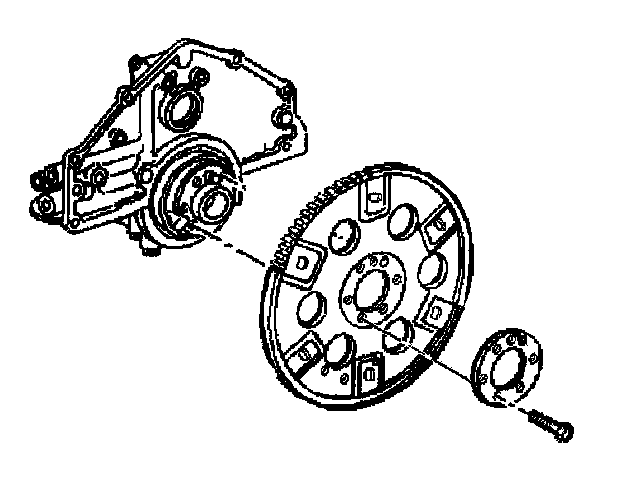 15. Install the bolts securing the torque converter to the engine flywheel.