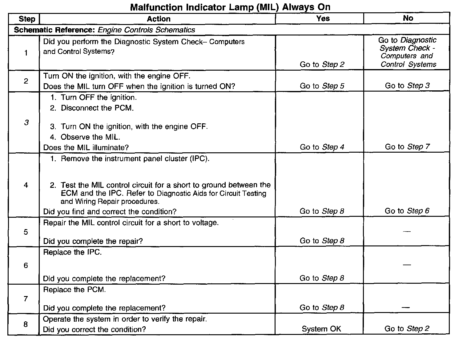 3. The step determines if the condition is with the MIL control circuit or the PCM.