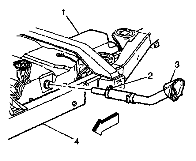 6. Disconnect the filler neck hose (3) from the fuel tank.