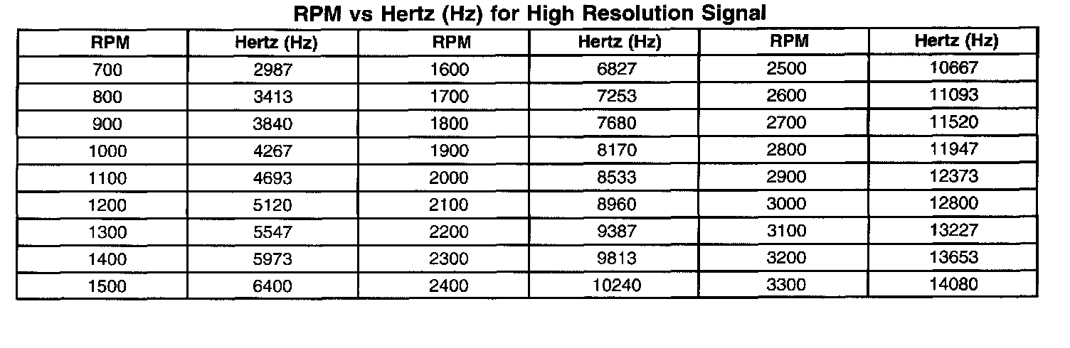 RPM Vs Hertz (Hz) For High Resolution Signal:
