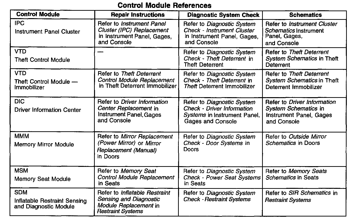 Control Module References