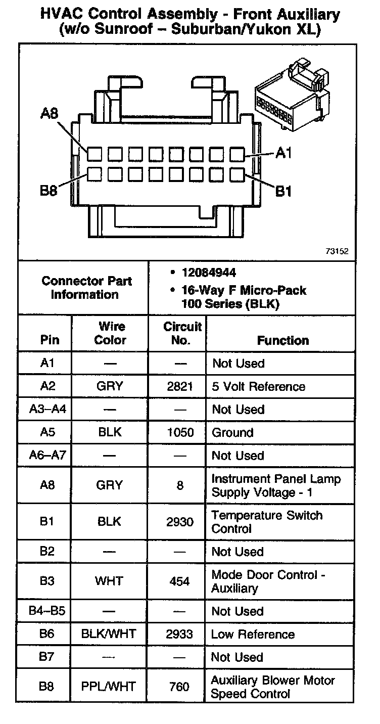 HVAC Control Assembly - Front Auxiliary (W/O Sunroof - Suburban/Yukon XL):