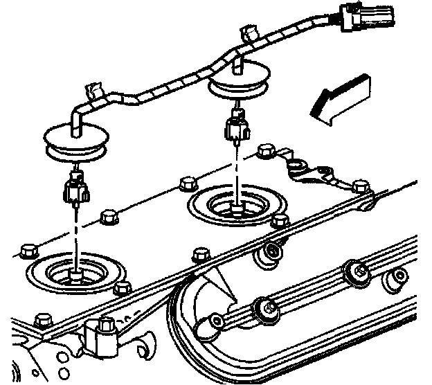 1. Lubricate the NEW knock sensor seals (1) with clean engine oil.