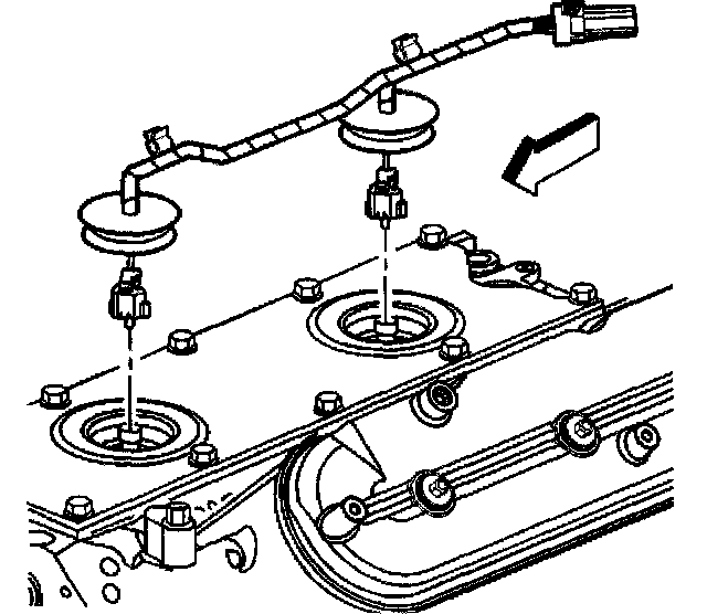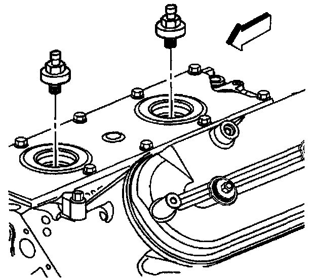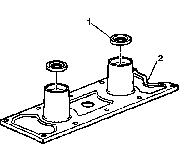 2. Install the knock sensor oil seals (1) into the engine valley cover (2).
