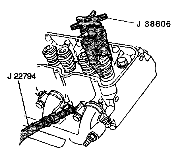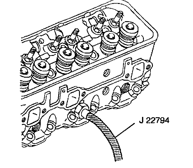 8. Apply compressed air to J 22794 in order to hold the valves in place.