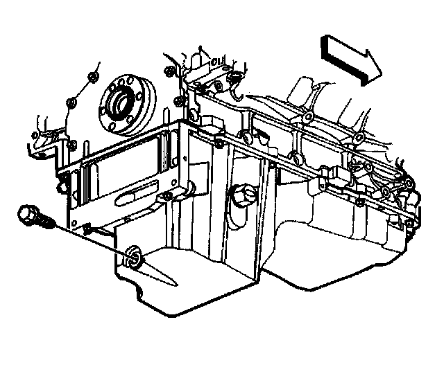 Important: In order to completely drain the oil from the oil pan internal baffling, the bottom of the oil pan must be level during the oil drain procedure.