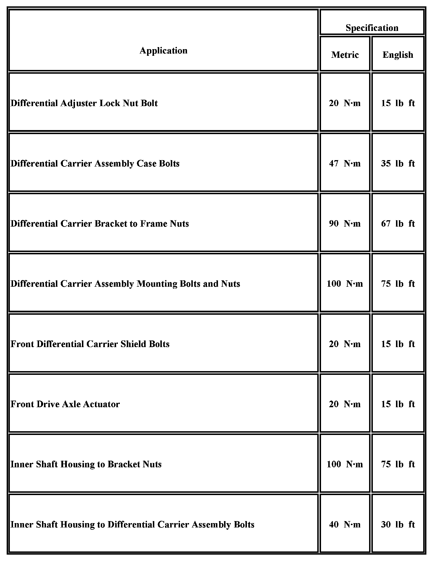 Fastener Tightening Specifications
