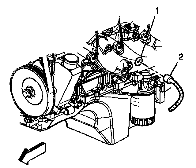 9. Push the engine coolant heater cord electrical connector (2) firmly into the coolant heater (1).