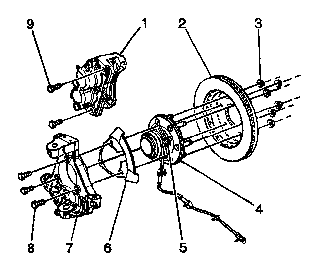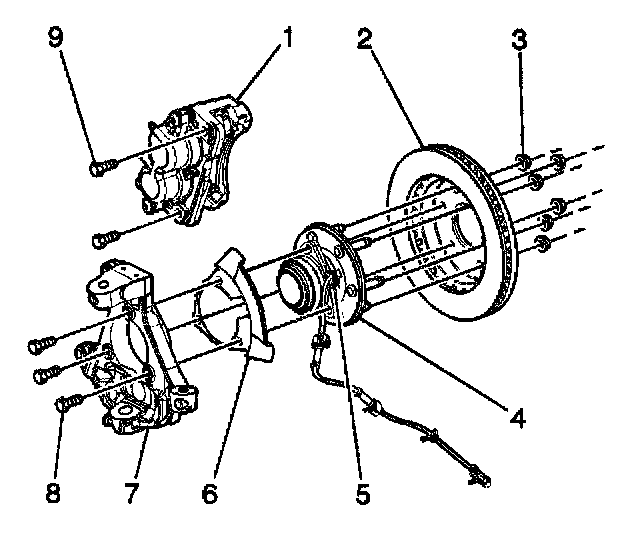 1. Install the WSS (5) into the hub/bearing assembly (4).