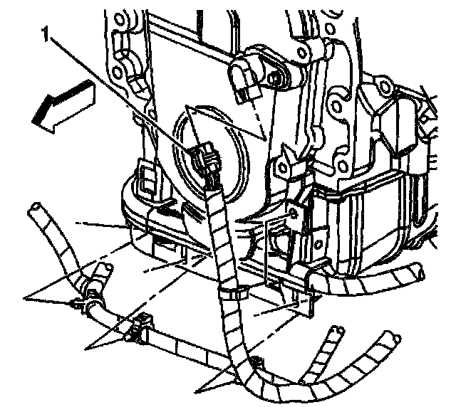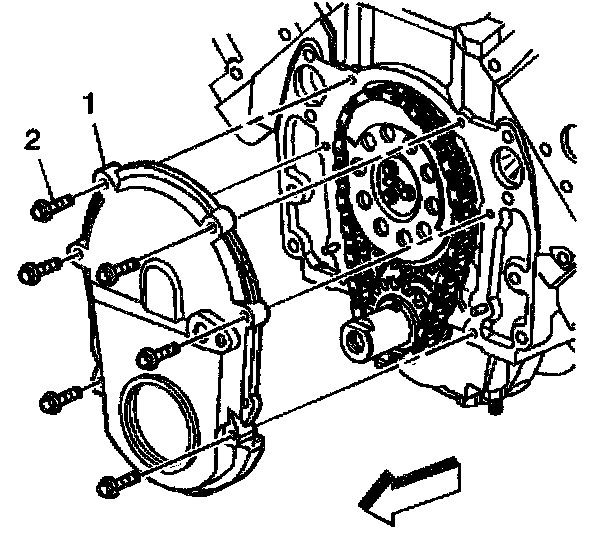 10. Remove the engine front cover (1).
