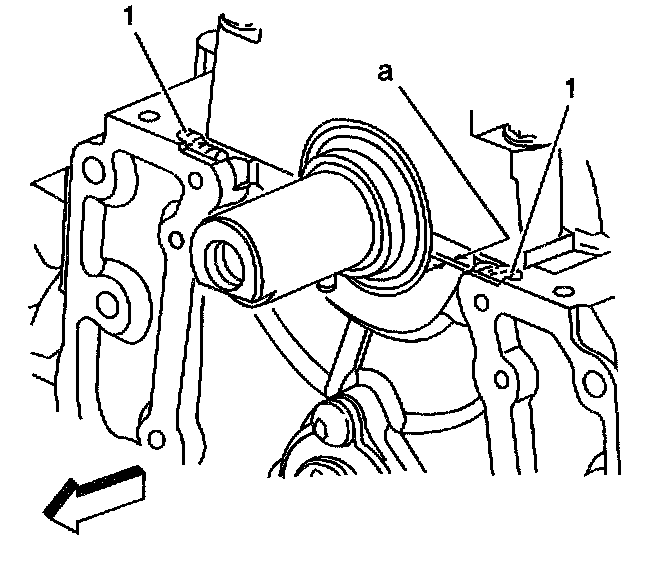 3. Apply sealant GM U.S P/N 12346286, Canada P/N 10953472, or equivalent in two places (1) on the engine block where the front cover meets the oil pan.