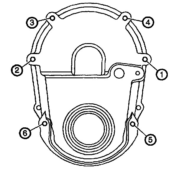7.1. Tighten the engine front cover bolts in sequence a first pass to 6 Nm (53 lb in).