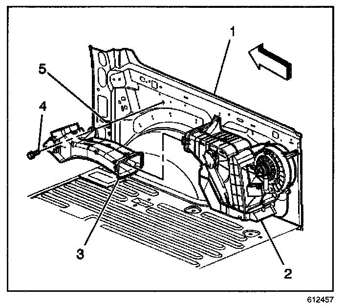 1. Install the auxiliary HVAC module assembly (3) to the vehicle.