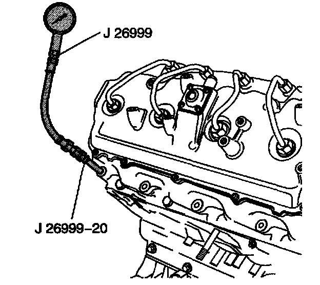 7. Install the J26999-20 in the glow plug hole for the cylinder that is being checked.