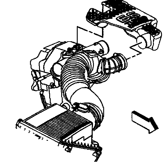1. Loosen the outlet duct clamp at the upper intake manifold cover.
