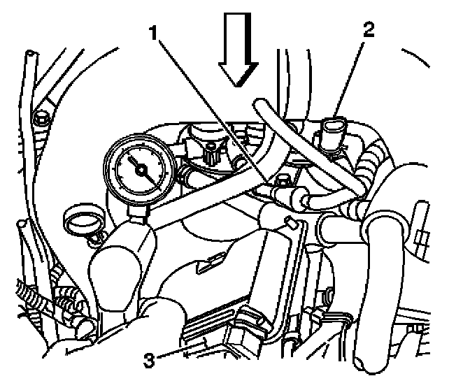 1. Install the J 44638 Vacuum Gage to the fuel system service port on the right front side of the engine.